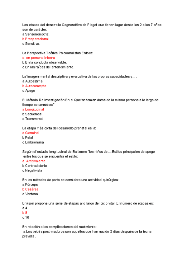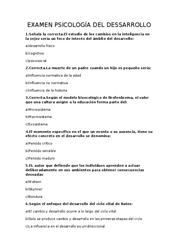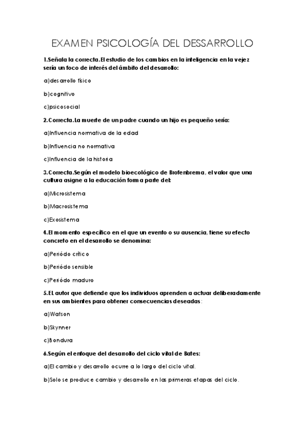Examenes Pscología del desarrollo