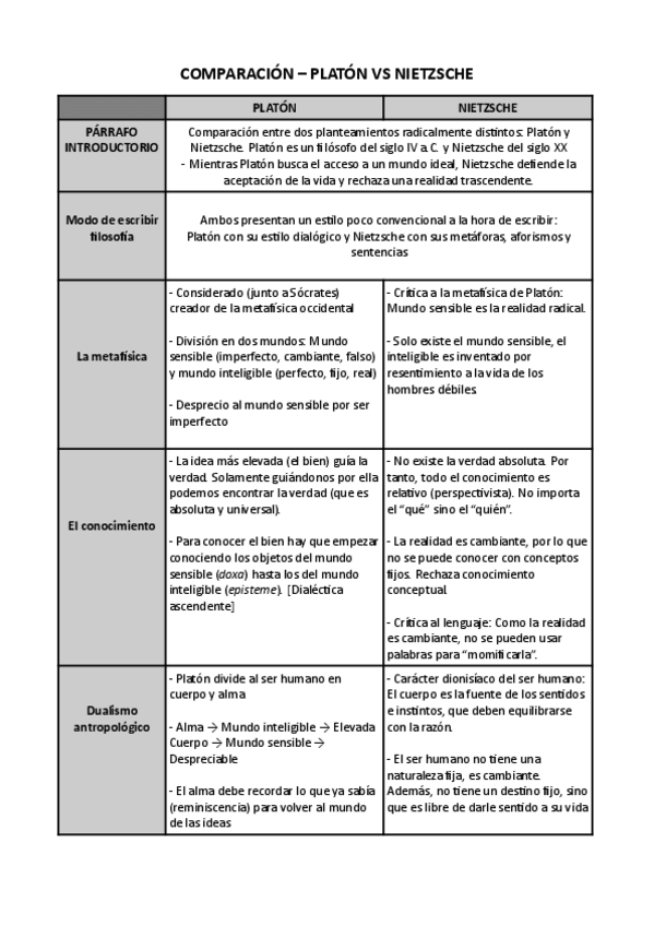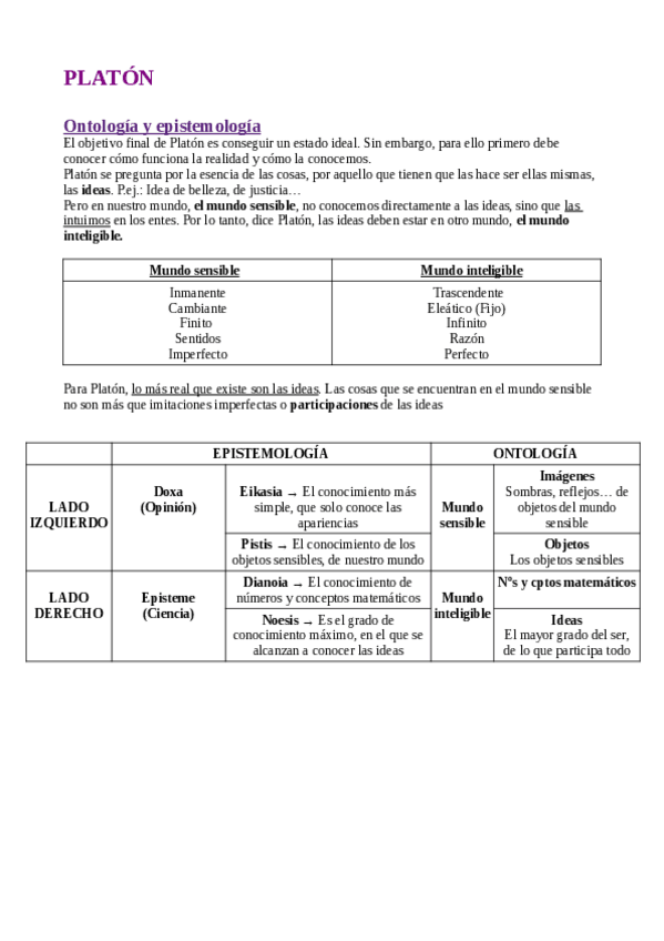Documento resumen de Platón para Hª de la filosofía de 2º de Bachillerato