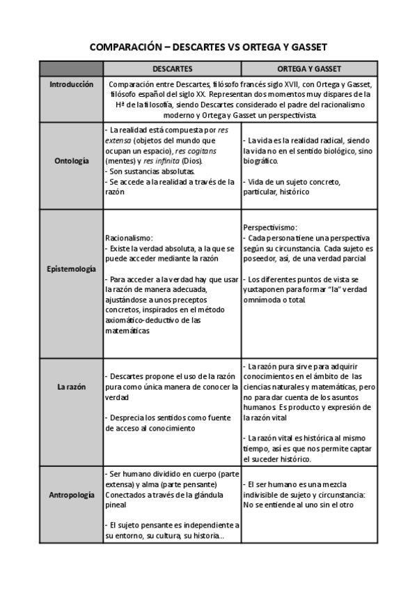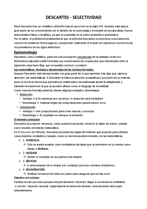 Resumen de la filosofía de Descartes para selectividad - 2º Bach