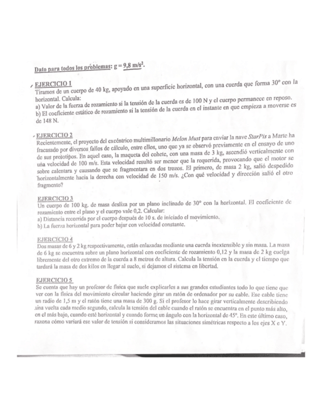 Los 3 primeros ejercicios del boletín de física 2024-25