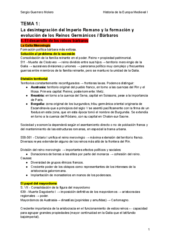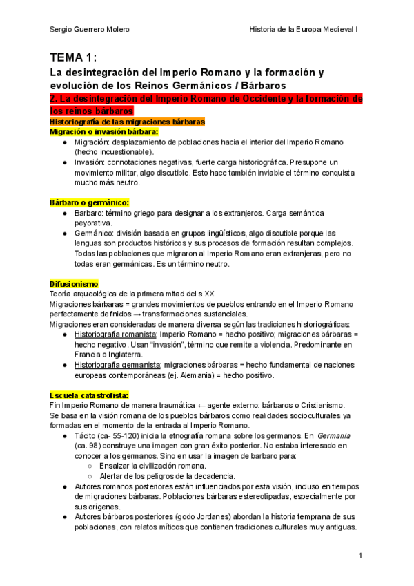 T1 - Desintegración del Imperio Romano y la formación y evolución de los Reinos Germánicos/Bárbaros