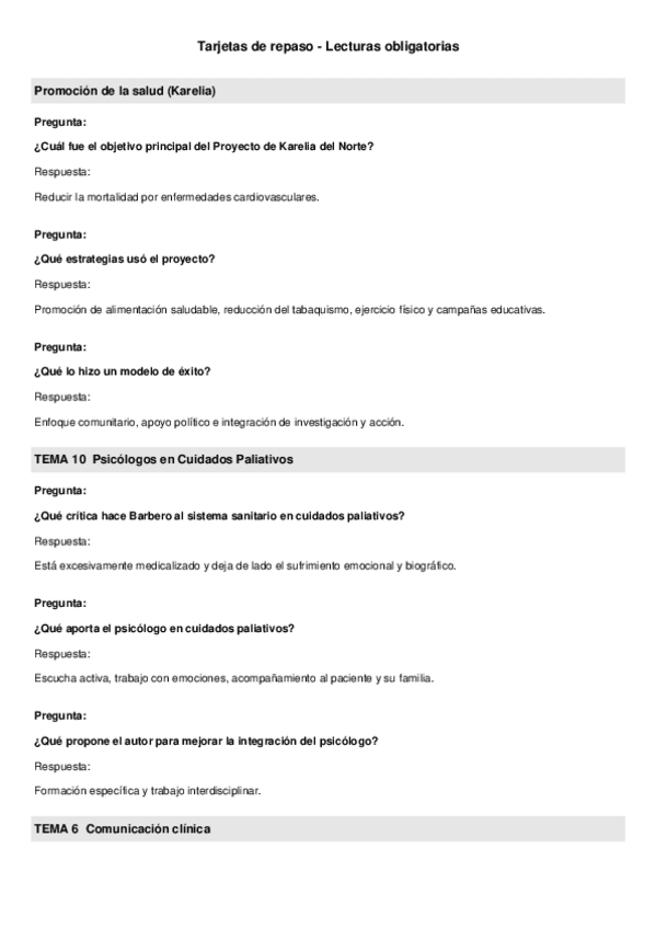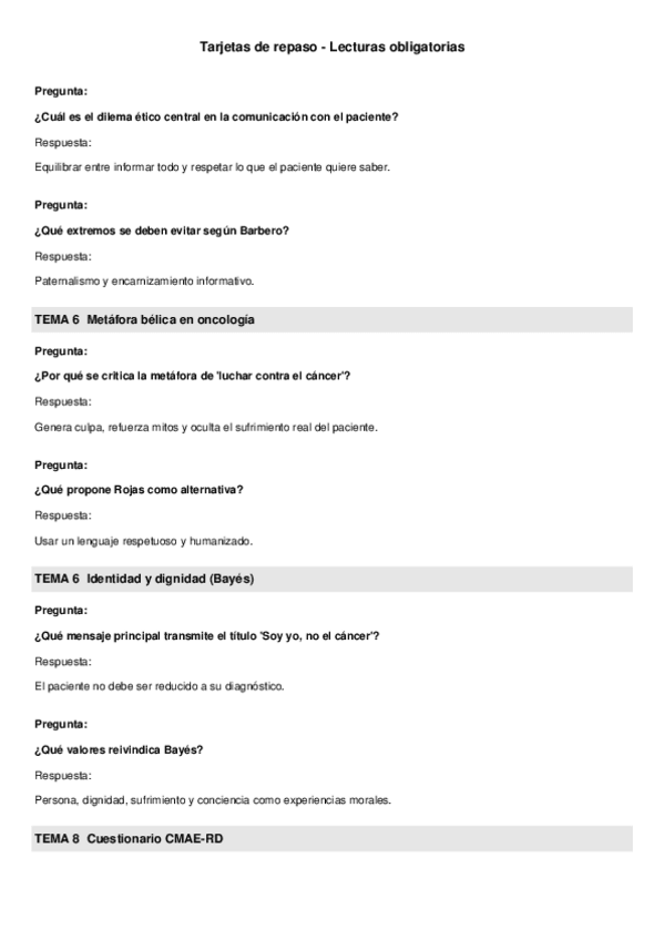 Tarjetas de estudio sobre las lecturas obligatorias