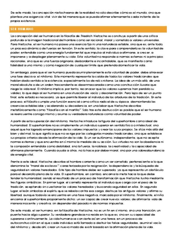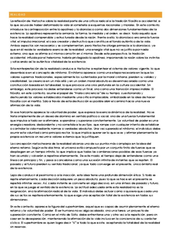 Apuntes de Nietzsche sobre los temas de realidad, ser humano, ética y Dios listos para la PAU