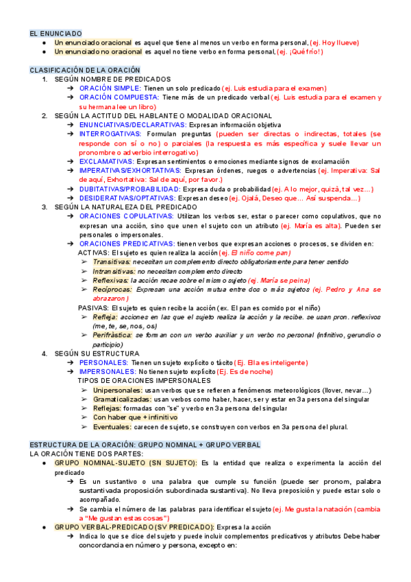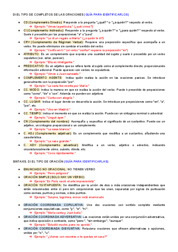 Aquests apunts expliquen els tipus de complements que pot haver-hi, així com els tipus d'oracions que hi ha.