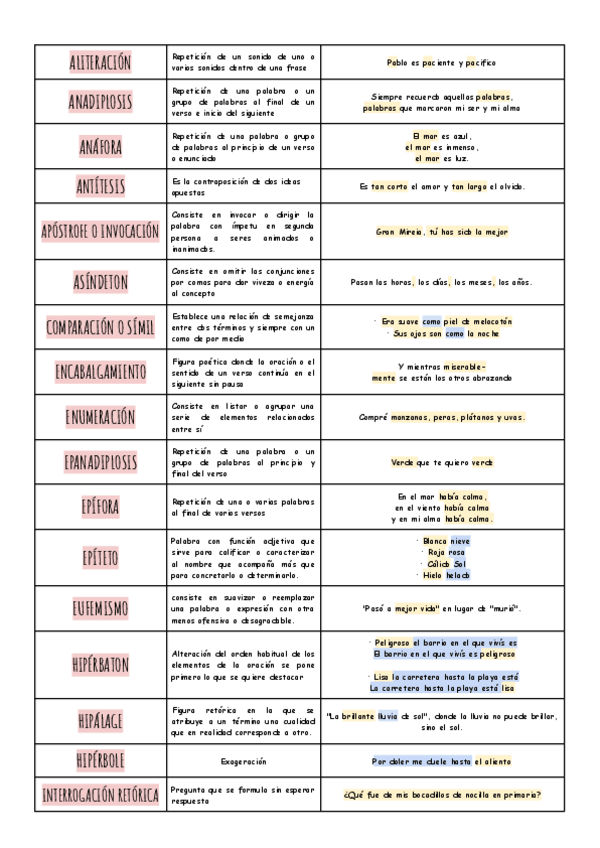 Lista de figuras retóricas que entran en la selectividad, con su explicación y ejemplos.