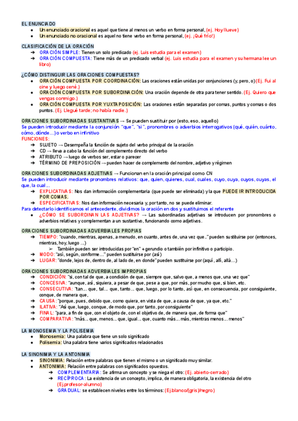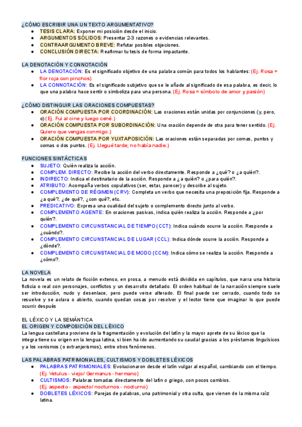 Apuntes de toda la asignatura de Castellano, donde hay sintaxis, léxico, semántica...