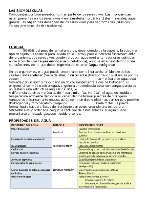 Resumen del 1er tema de la estructura de la materia de biología de 2 de bachillerato.