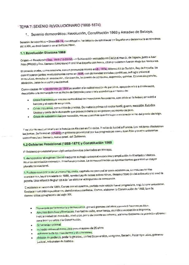 Tema 6 PAU Historia de España - El Sexenio Democrático: Revolución, Constitución de 1869 y la monarquía de Amadeo de Saboya. (Andalucía)