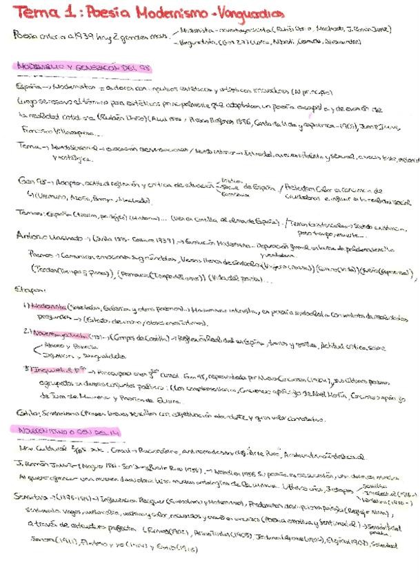 Resumen Tema 4 Literatura PAU Andalucía 25/26: La poesía desde el Modernismo a las vanguardias, autores/as y obras representativos.