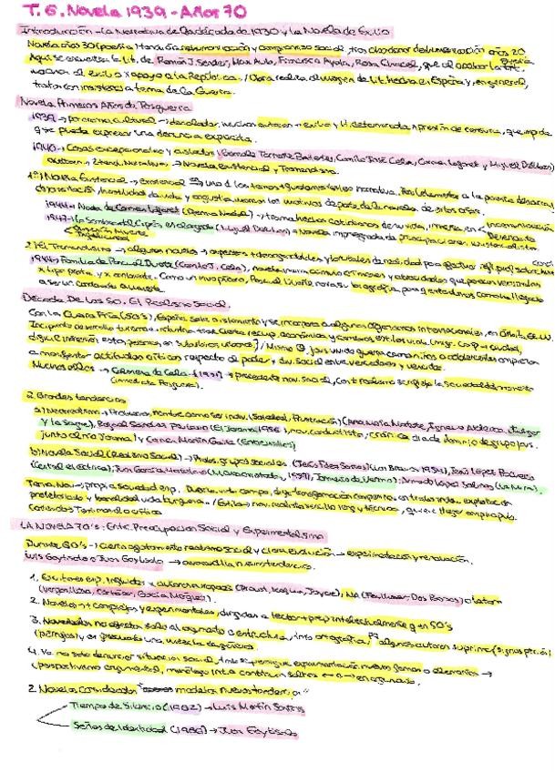 Resumen Tema 2 PAU Andalucía Literatura: La novela desde 1939 hasta los años 70: tendencias, autores/as y obras representativos.