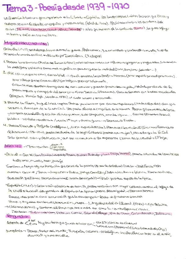 Resumen PAU Andalucía Tema 6 Literatura: La poesía desde 1939 a los años 70: tendencias, autores/as y obras representativos