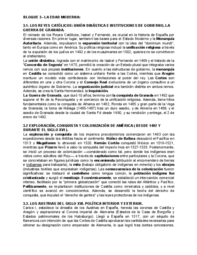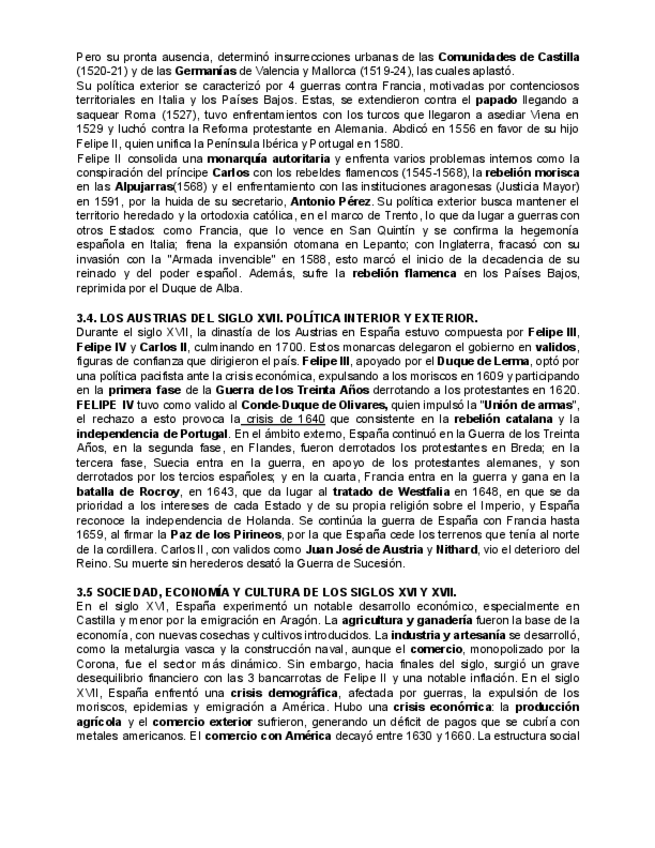Resumen de los epígrafes del tema 3 de la edad moderna de Historia de España