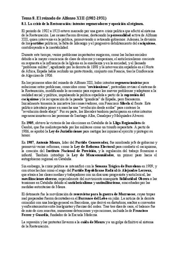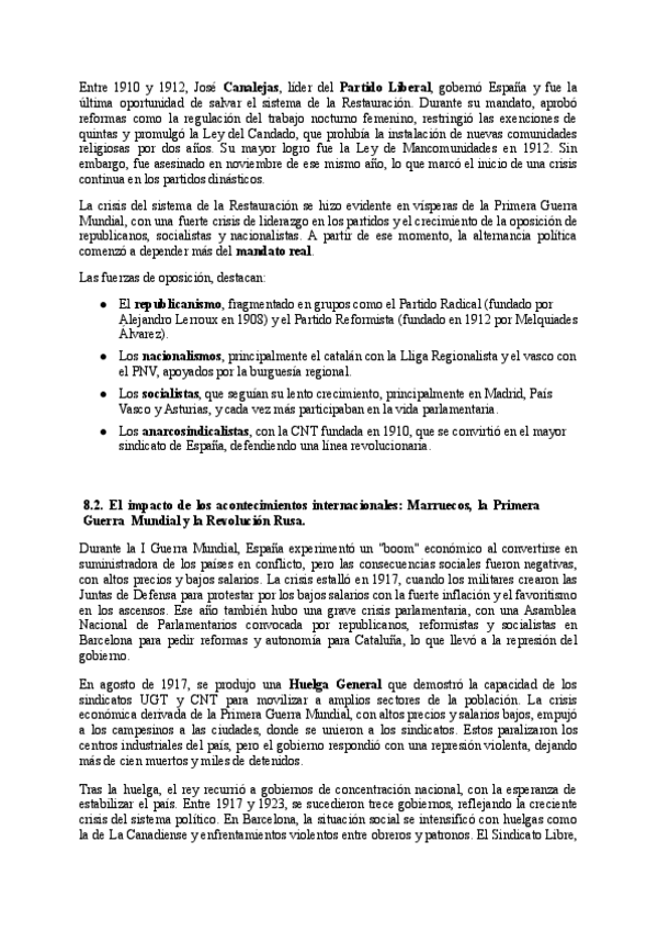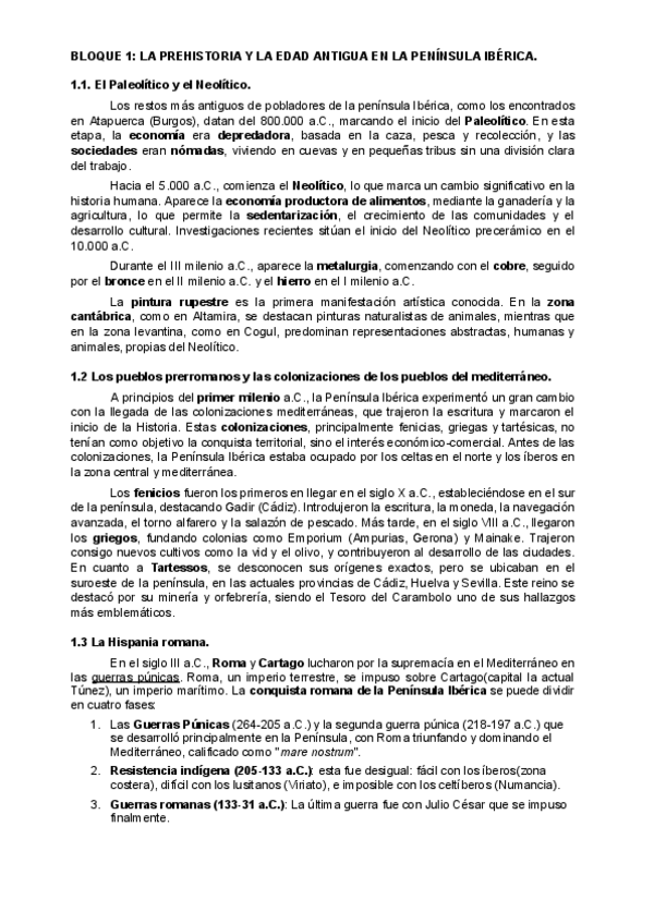 Resumen de los epígrafes del tema 1 en historia de España