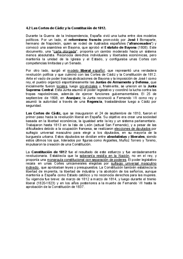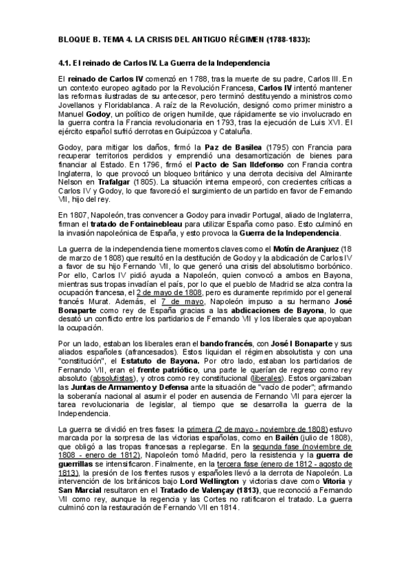 Resumen del BLOQUE B. TEMA 4. LA CRISIS DEL ANTIGUO RÉGIMEN (1788-1833). Adaptado para la redacción de los temas en los exámenes de la PAU