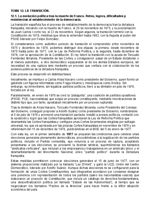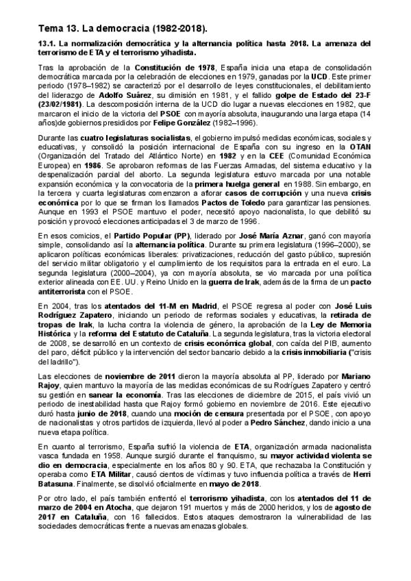 Resumen del tema 13 DEMOCRACIA adaptado para la PAU de historia de España