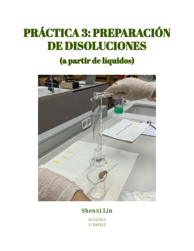 Informe de práctica de laboratorio en 1 bachillerato sobre la preparación de disoluciones a partir de líquidos