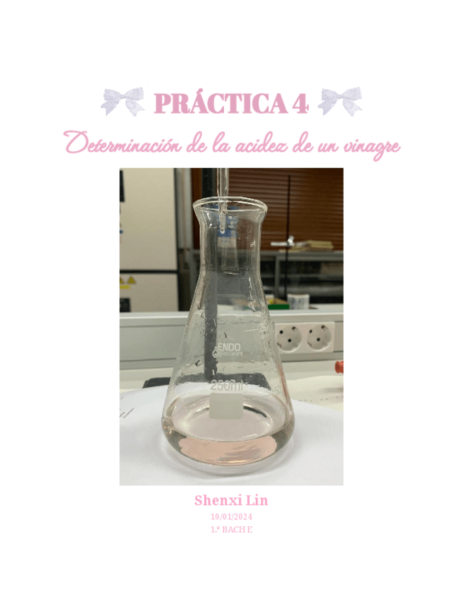 Informe de práctica de laboratorio en 1 bachillerato sobre la determinación de acidez de un vinagre