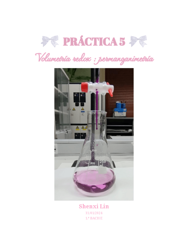 Informe de práctica de laboratorio en 1 bachillerato sobre la volumetría redox: permanganimetría