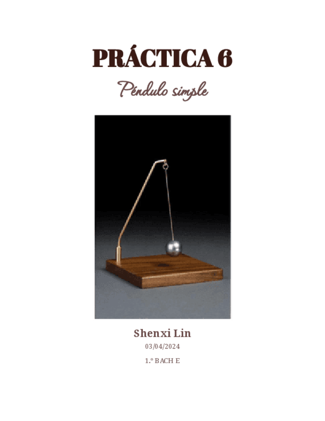 Informe de práctica de laboratorio en 1 bachillerato sobre el péndulo simple
