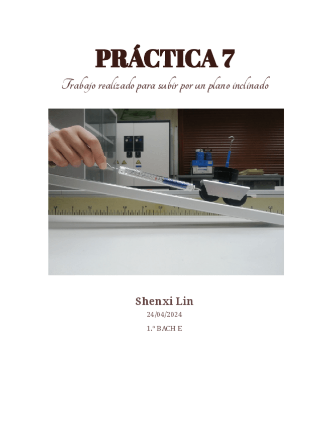 Informe de práctica de laboratorio en 1 bachillerato sobre el trabajo realizado para subir por un plano inclinado