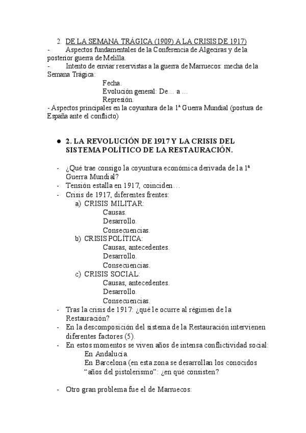 Esquema de la crisis de la Restauración y la crisis de la Monarquía 1902-1931