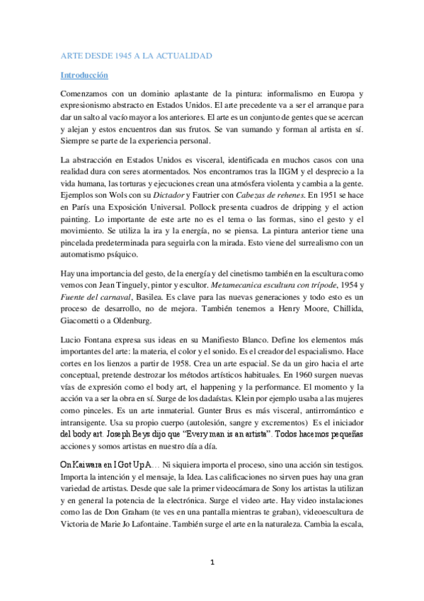 Apuntes Arte 1945 a la Actualidad (prof. Pilar Cabañas)