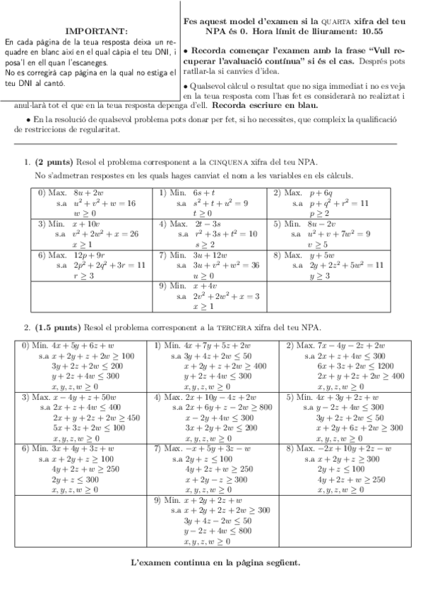 He publicado nuevos examenes de 1º Matemáticas II: Exàmens finals