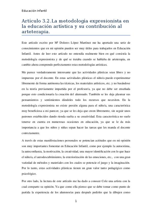 He publicado nuevos apuntes de 3º La Expresión Plástica en la Infancia y Su Didáctica: Artículo 3.2..docx