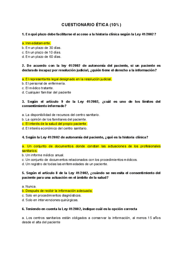 Seminario del 10% sobre preguntas de legislación.