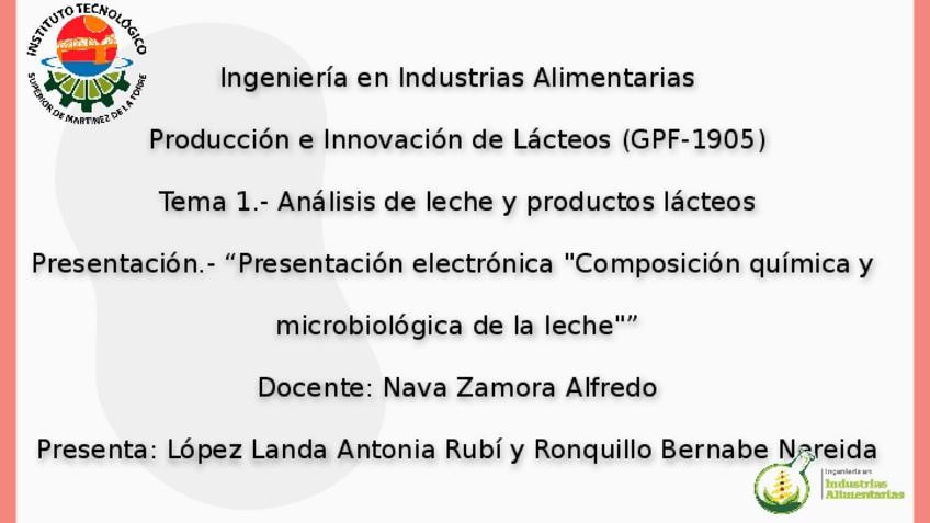 Presentación electrónica "Composición química y microbiológica de la leche"