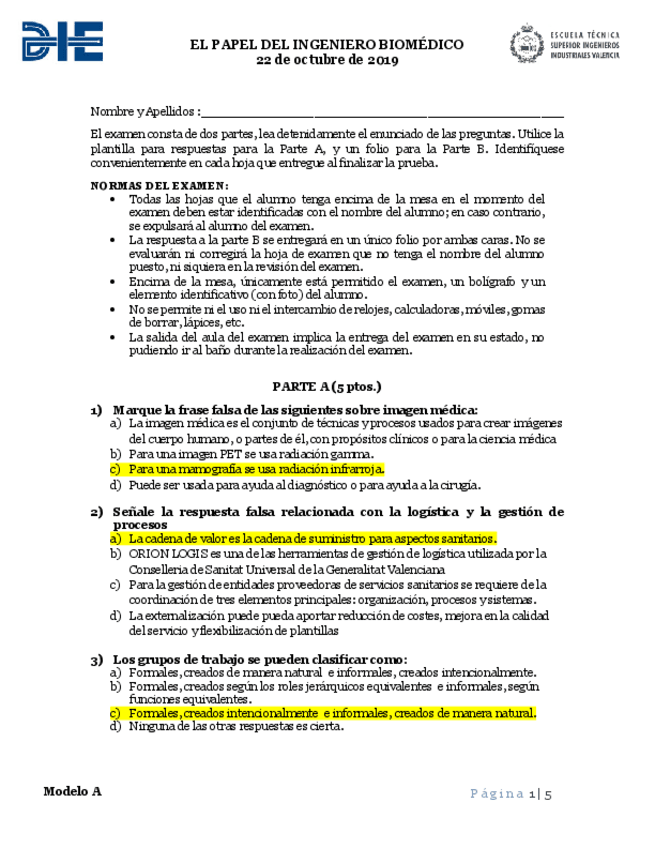 He publicado nuevos examenes de 1º El papel del Ingeniero Biomédico: Examen I Parcial 2017_18 con soluciones marcadas