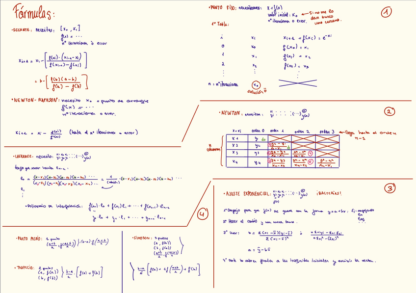 Formulario cálculo numérico para matemáticas II con las fórmulas que entraron en el examen de mayo, 2025.