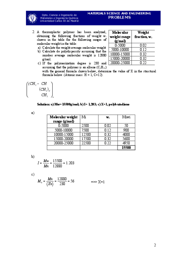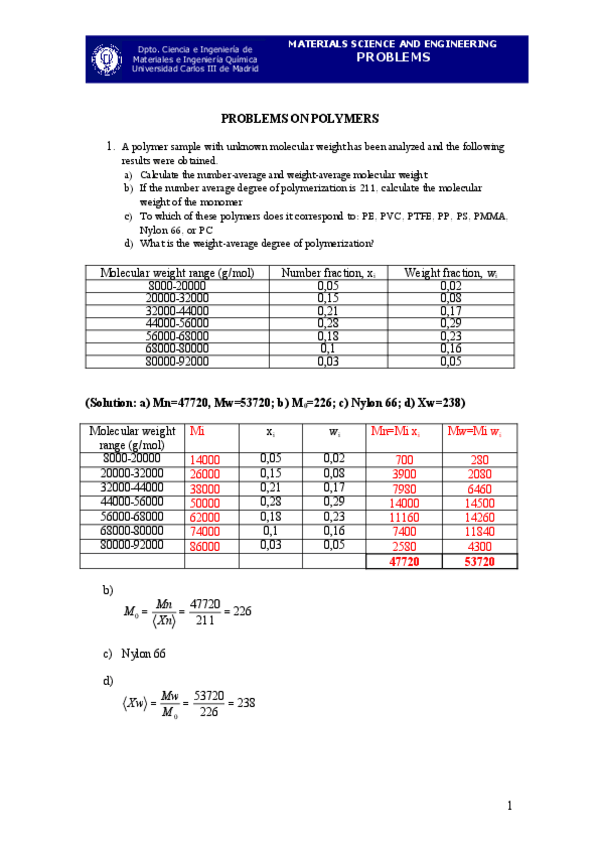 He publicado nuevos ejercicios de 2º Ciencia e Ingeniería de Materiales: Session 23 Problems on polymers_Solutions.pdf