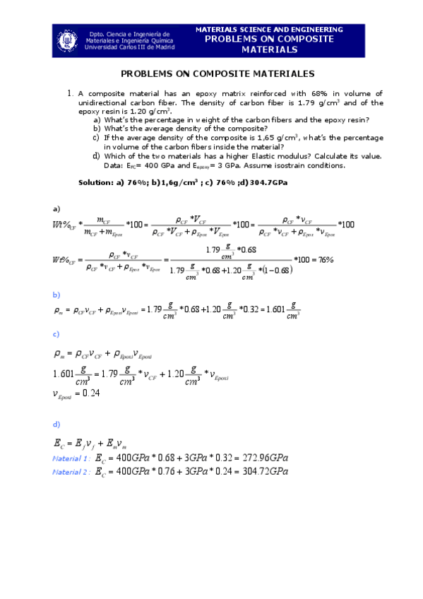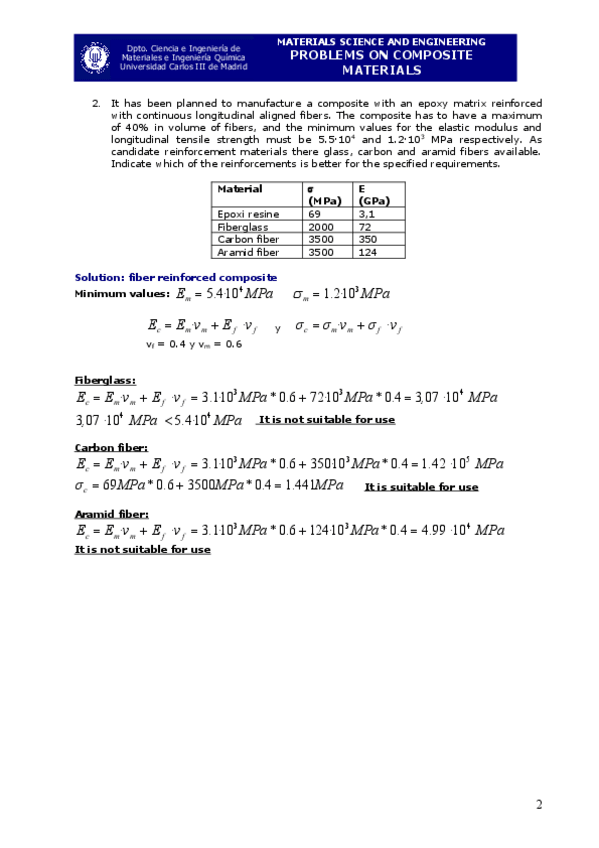 He publicado nuevos ejercicios de 2º Ciencia e Ingeniería de Materiales: Session 24 Problems on Composites_Solutions.pdf