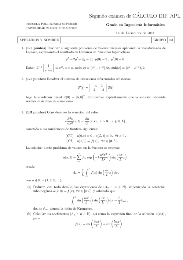 He publicado nuevos examenes de 2º Cálculo diferencial aplicado: Exámenes Cálculo Diferencial - Ingeniería Informática