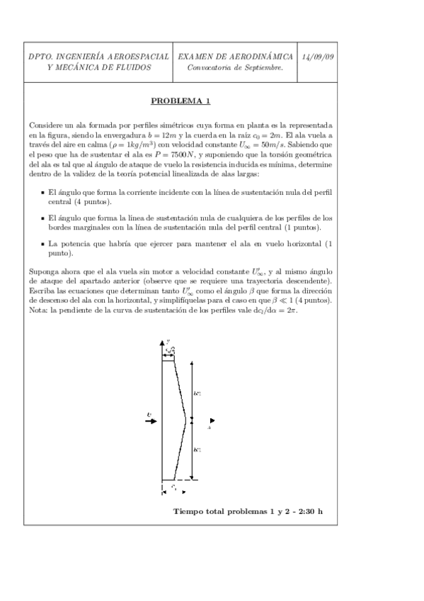 Enunciados de exámenes de Aerodinámica de años anteriores