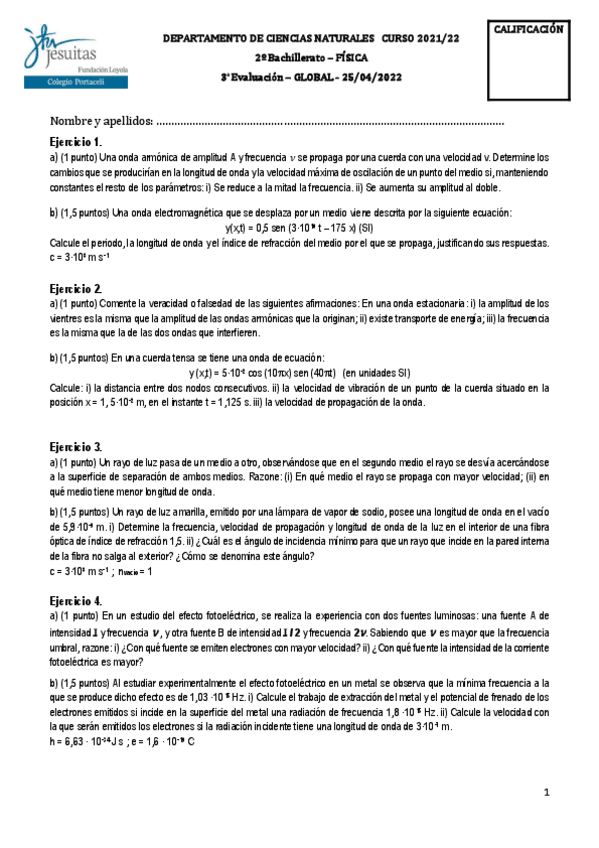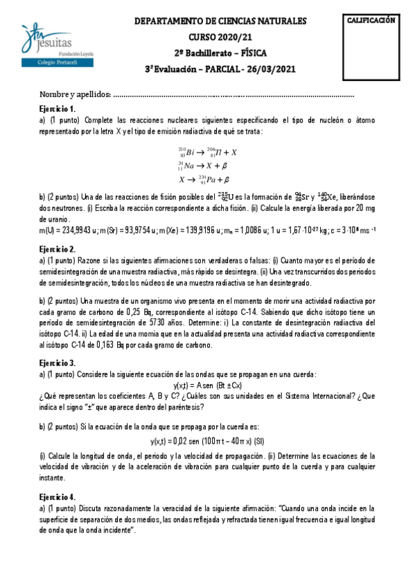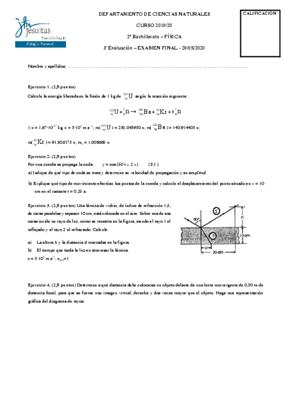Boletín de exámenes fisica