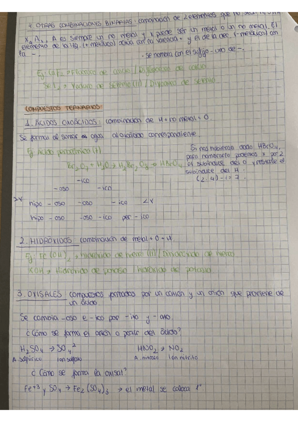 Apuntes formulación inorgánica sacados del libro Una Química Para Todos pero más resumido, para repasar con ejemplos.