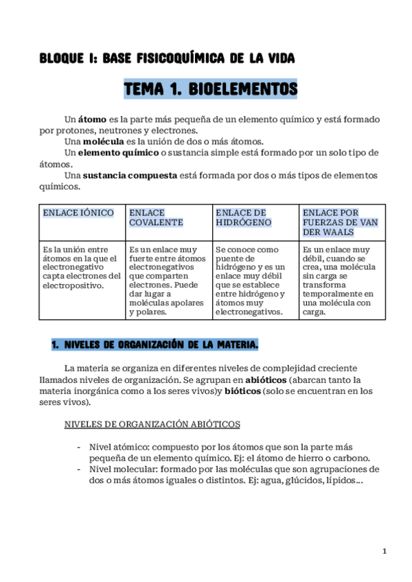 Tema 1 Biología. Cumple con todo lo que piden respecto a este tema, además tiene muchos ejemplos.