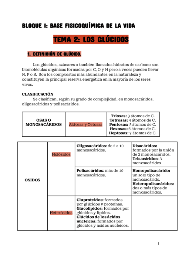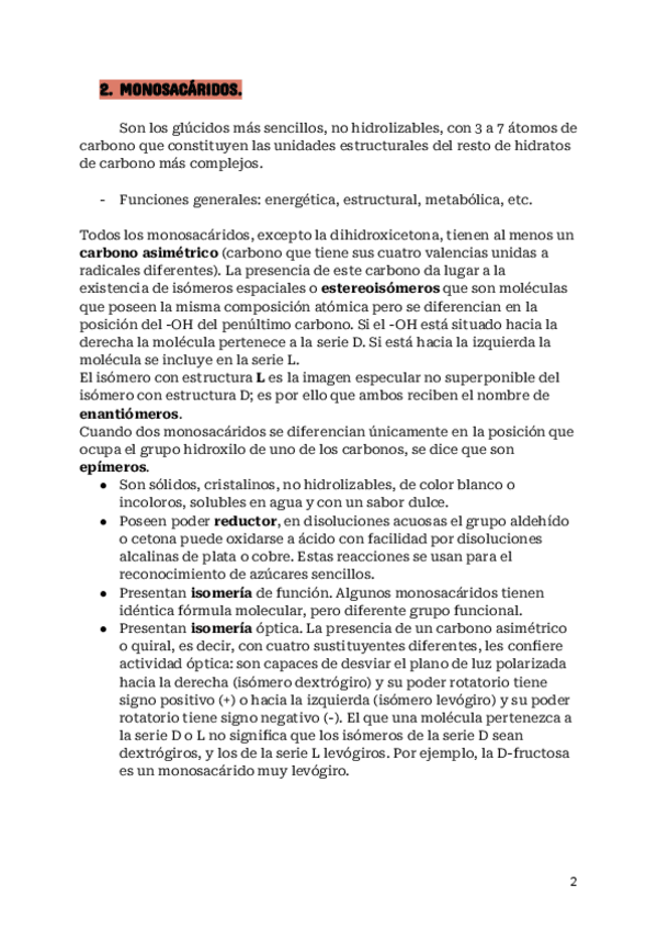 Tema 2. Glúcidos. Cumple con todo lo que piden para la selectividad 2024.