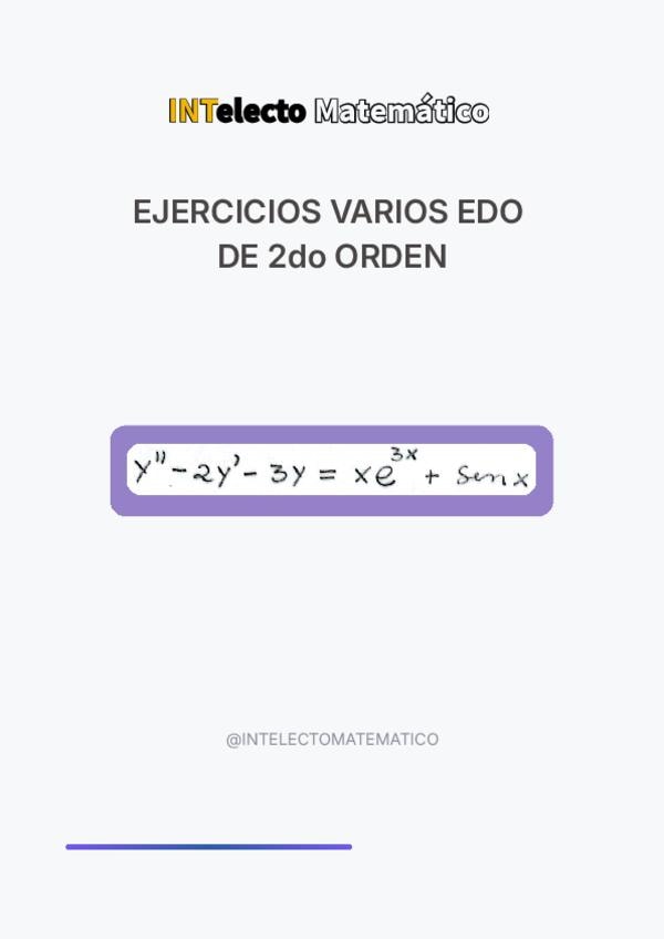 He publicado nuevos apuntes de 3º Ecuaciones Diferenciales: final006.EDO-2do-orden-y-MASA-RESORTE-ejercicios-resueltos.pdf