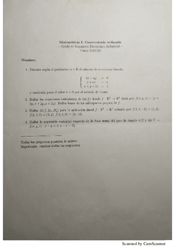 He publicado nuevos examenes de 1º Matemáticas I: Examen final 2019-2020