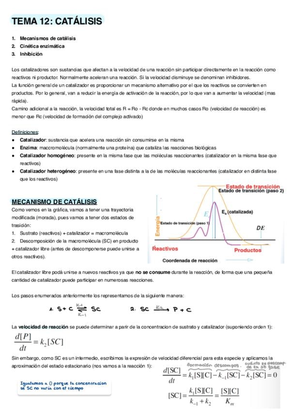 Esquema resumido/guion para estudiar el tema 4 de bioquímica