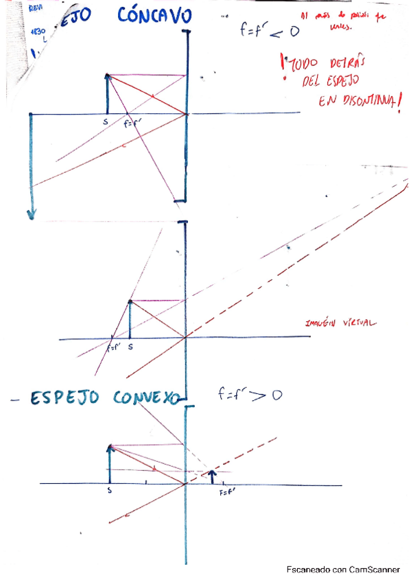 DIBUJOS DE ESPEJOS TEMA ÓPTICA FISICA CON EL QUE SAQUÉ 9,5 EN PRUEBA DE FÍSICA EVAU 2024 MADRID