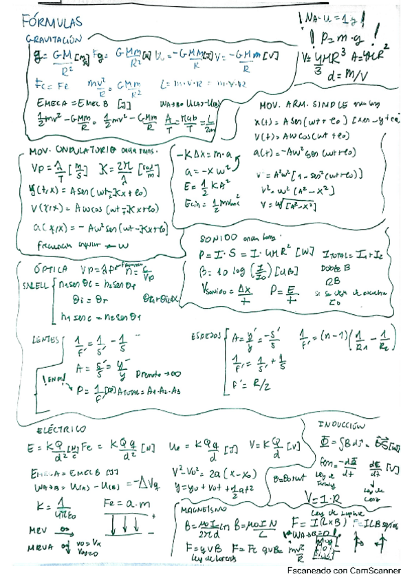 RESUMEN FÓRMULAS FISICA CON EL QUE SAQUÉ 9,5 EN FÍSICA EN LA EVAU 2024 MADRID