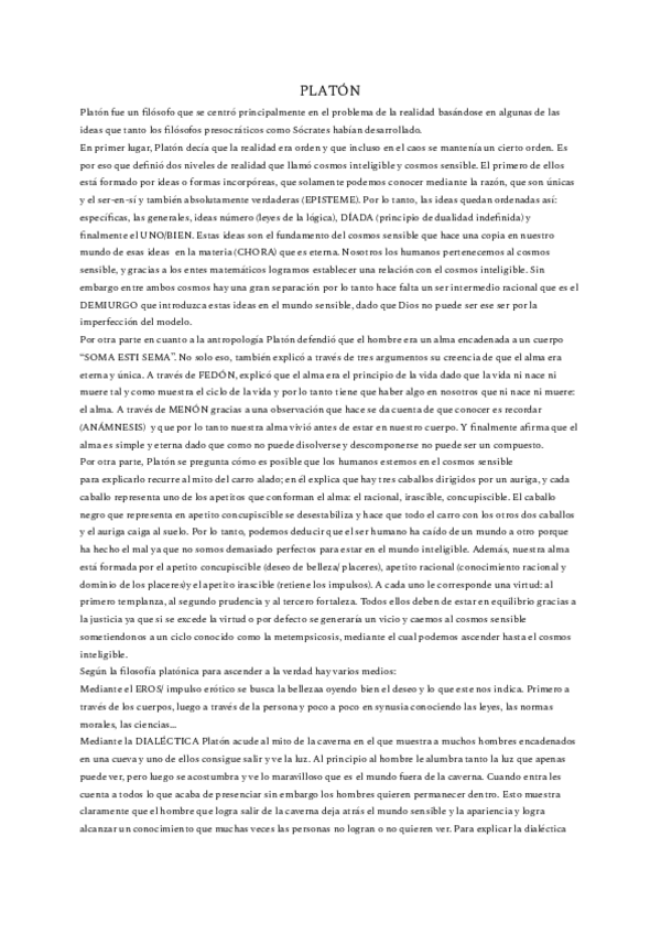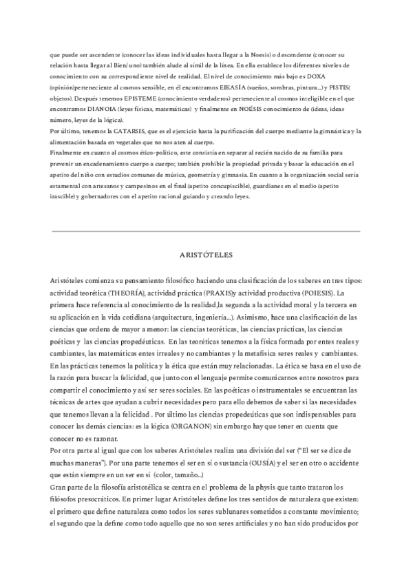 RESUMENES DE PLATÓN, ARISTÓTELES Y SAN AGUSTÍN DE HISTORIA DE LA FILOSOFÍA CON LOS QUE SAQUÉ UN 9 EN 2º DE BACH