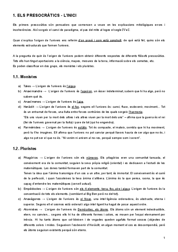 Apunts del primer trimestre d’història de la filosofia: Presocràtics, Sofistes, Sòcrates, Plató i Aristòtil.