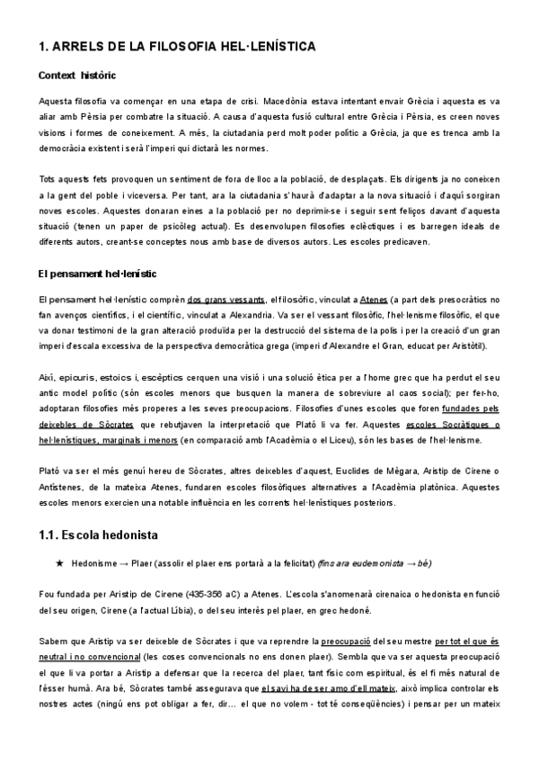Apunts història de la filosofia 2n de batxillerat del 2n trimestre: filosofia hel·lenística, filosofia moderna (Descartes) i Immanuel Kant