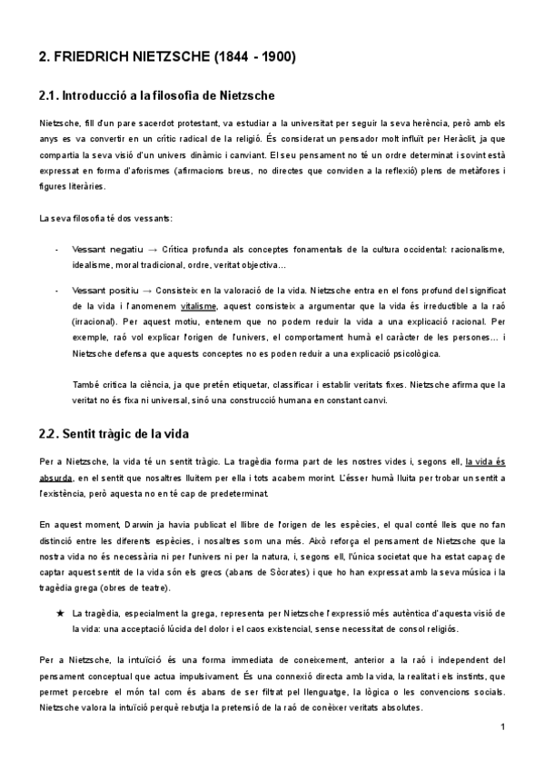 Apunts història de la filosofia 2n de batxillerat: FRIEDRICH NIETZSCHE