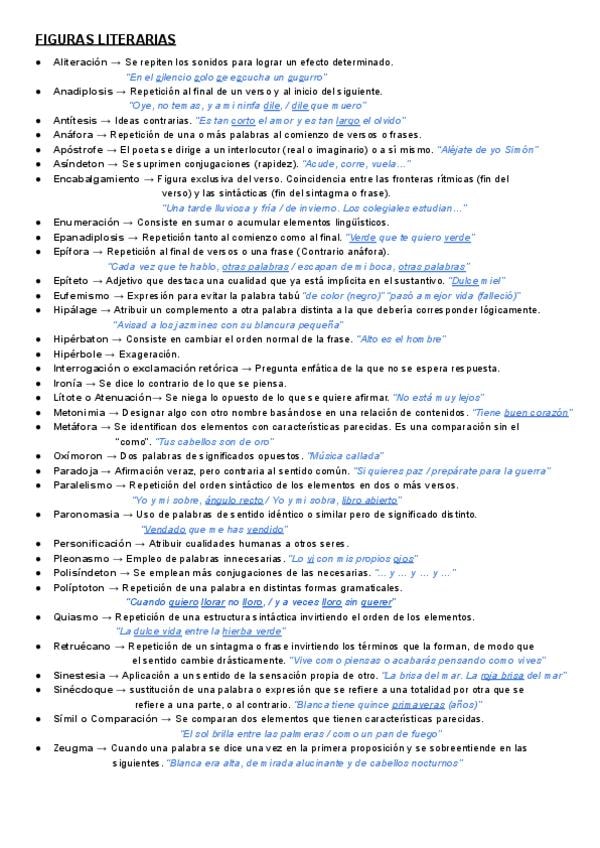 Figuras literarias/retóricas y tópicos latinos de Castellano.